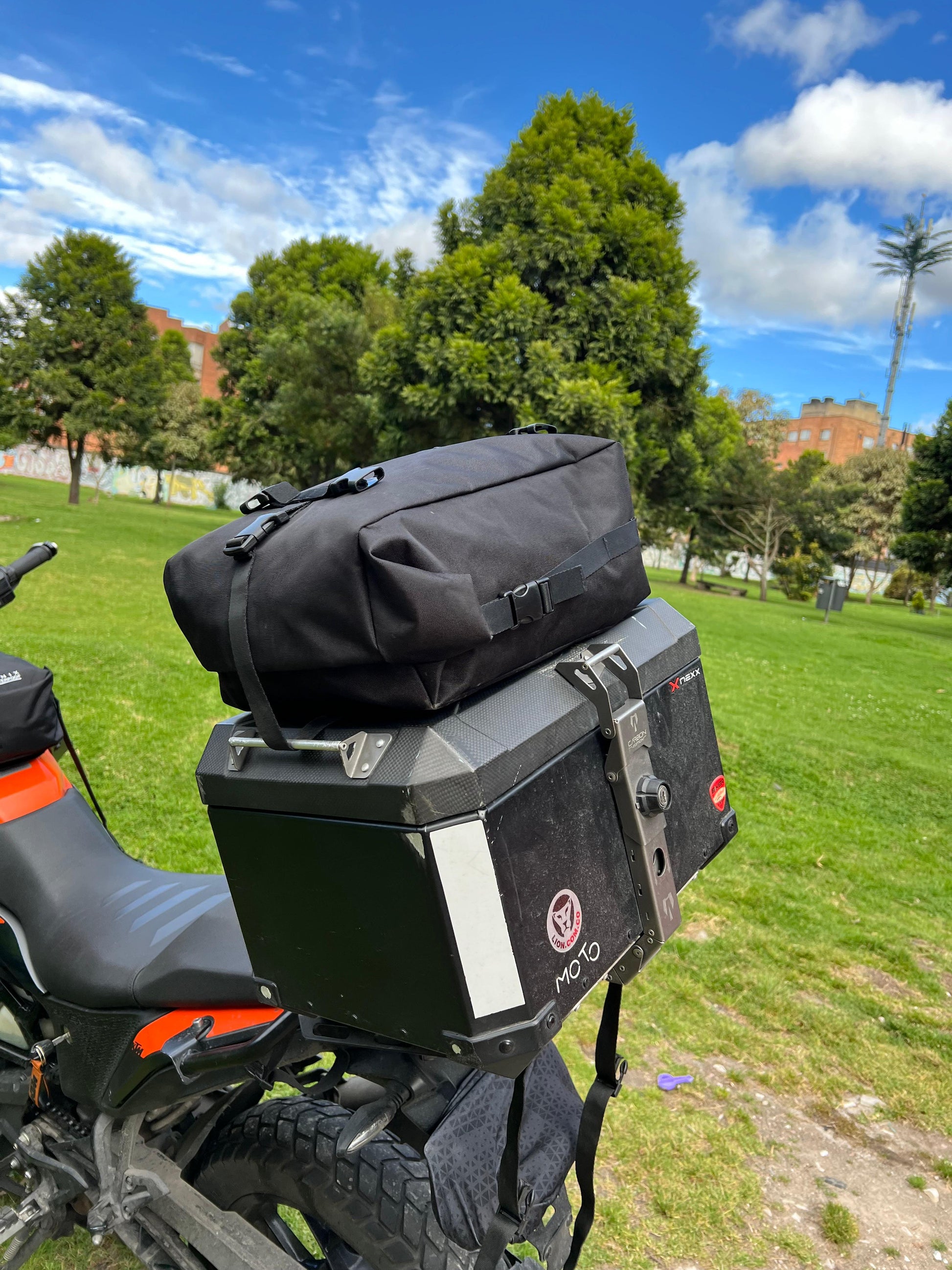 Un producto 100% colombiano 🇨🇴 fabricados en lona bicapa termosellados para asegurar su impermeabilidad, diseñado para anclar sobre el asiento del copiloto, parrilla o encima del topcase, sobre el porta alforjas o sin el mismo. (se debe contar con puntos de anclaje)