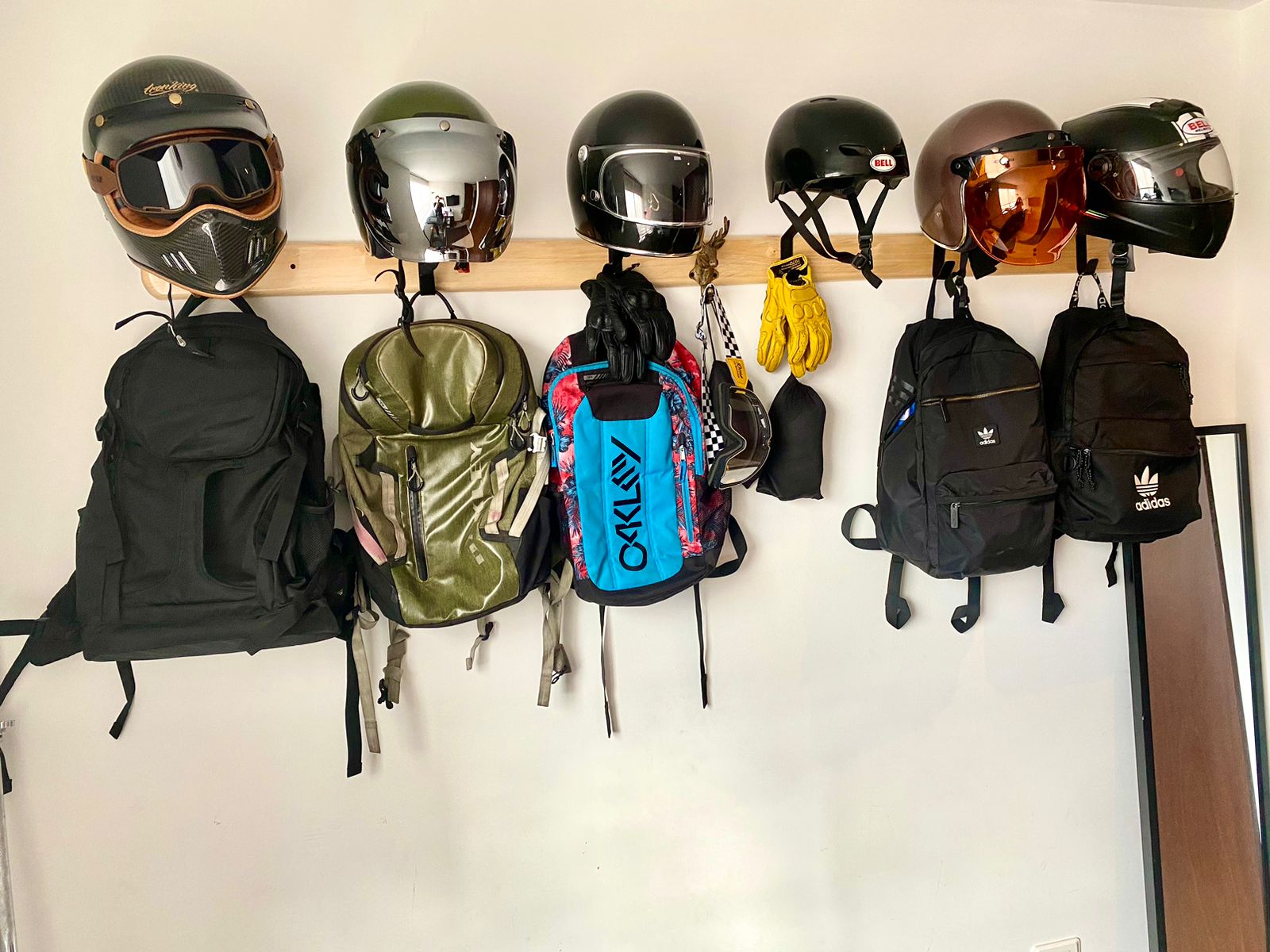 Soporte para cascos horizontal en acabado natural para 6 cascos