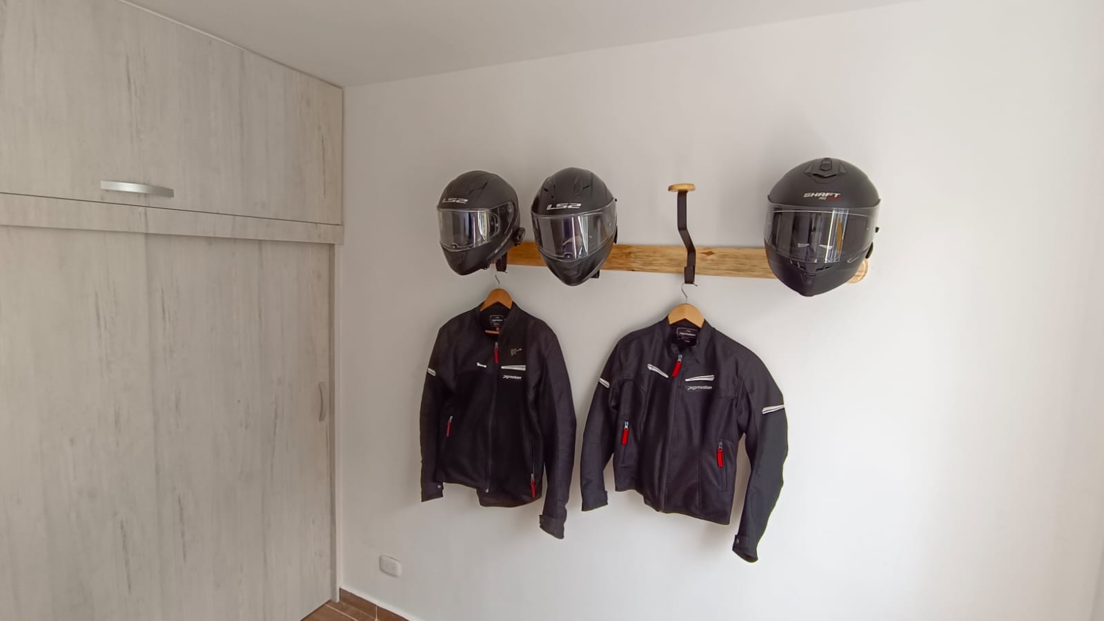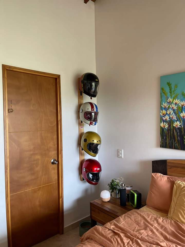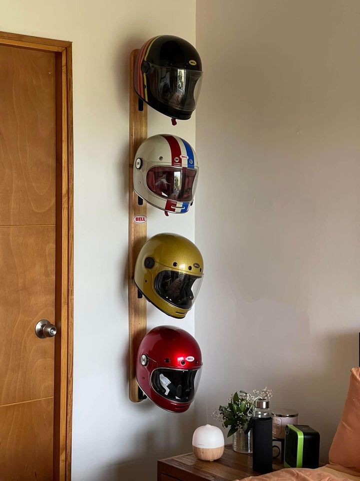 Soporte para cascos vertical en acabado natural para 4 cascos